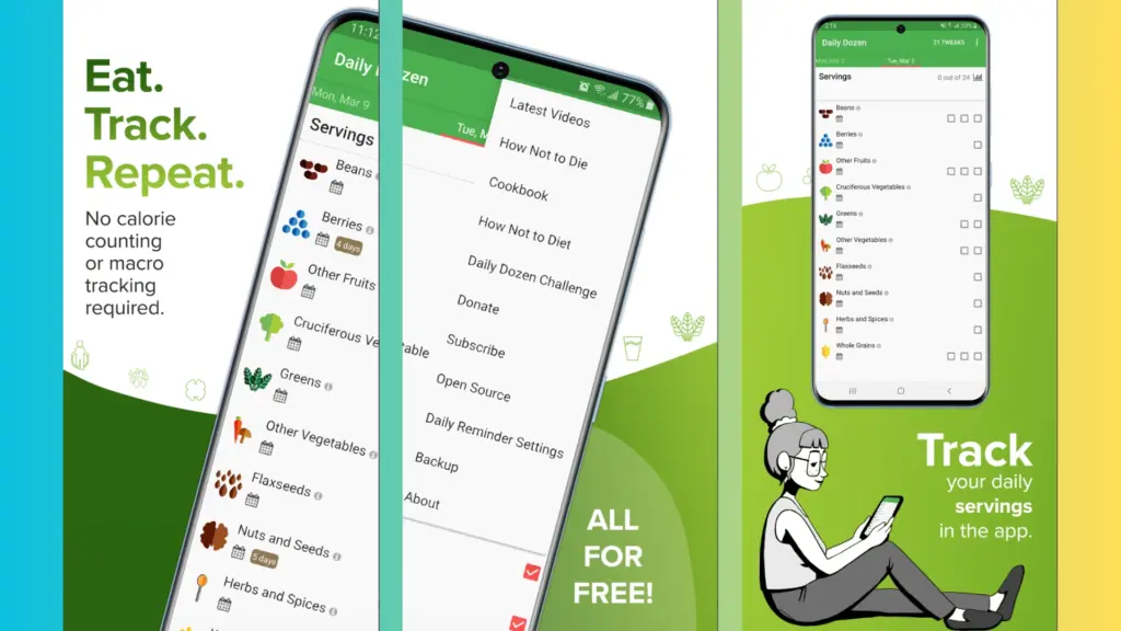 Eğer hedefiniz kalori saymaktan çok, sağlıklı ve dengeli bitki bazlı beslenme alışkanlıkları kazanmaksa, Dr. Greger’s Daily Dozen uygulaması sizin için mükemmel bir seçenektir.