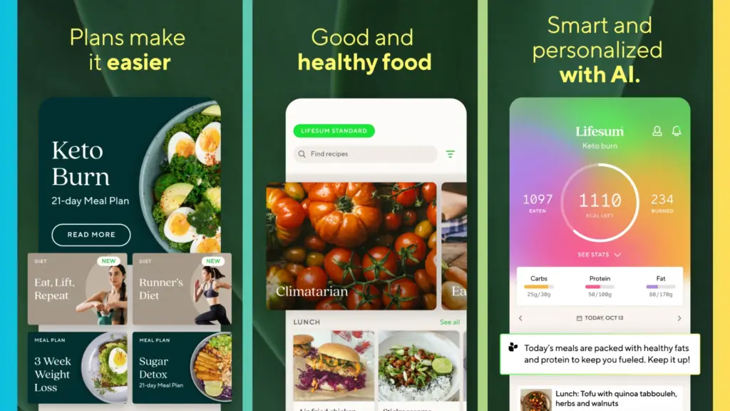 Lifesum, şık tasarımı ve kullanıcı dostu arayüzü ile dikkat çeker. Vegan diyet planları ve su takibi özellikleri ile bütünsel bir yaklaşım sunar.